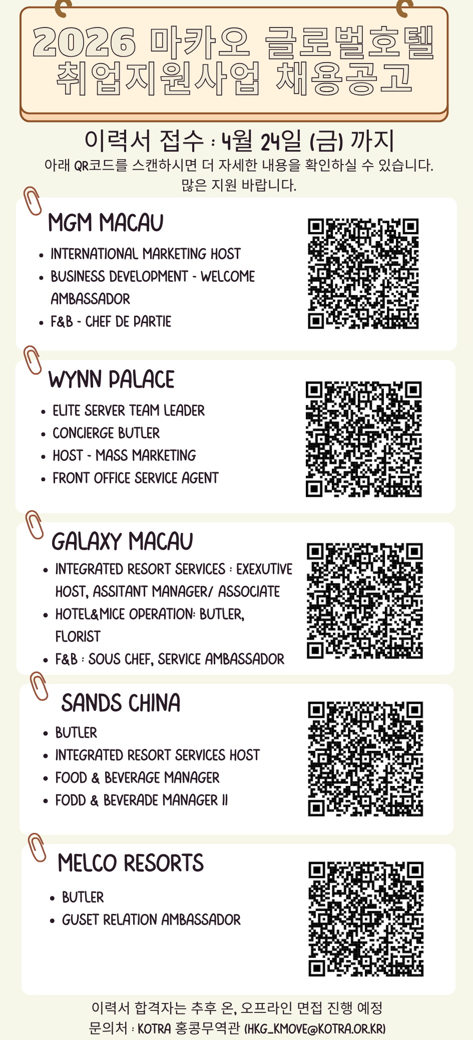 [KOTRA 홍콩무역관] 2026 마카오 글로벌호텔 취업지원사업 채용 공고 (~4/24)
